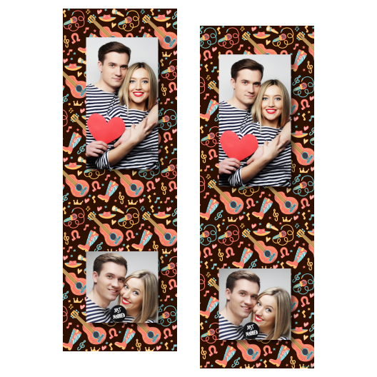 Kształt 2 zdjęć jest w formie portretowej, kwadratu, które dobrze komponują się z całym szablonem, co pomaga użytkownikom wykonać udaną sesję zdjęciową.