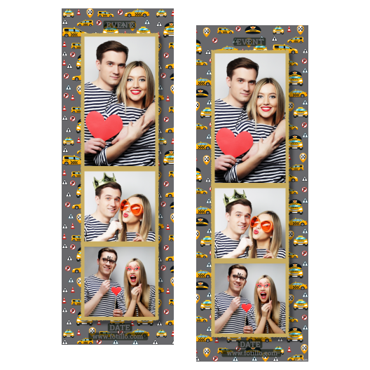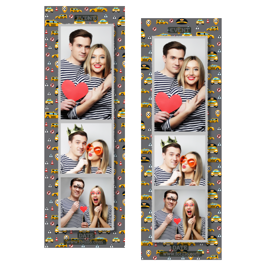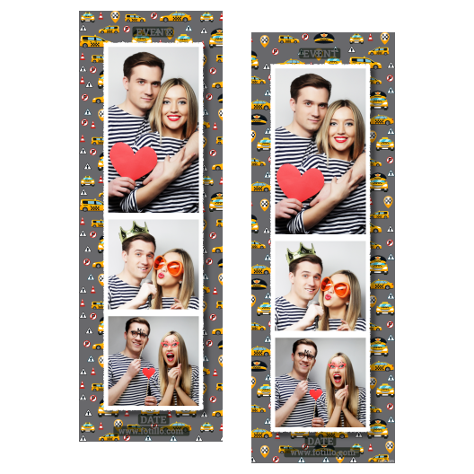 Dzień Taksowkarza z szarym tłem + pojazdy – Paski 15x5cm model 107