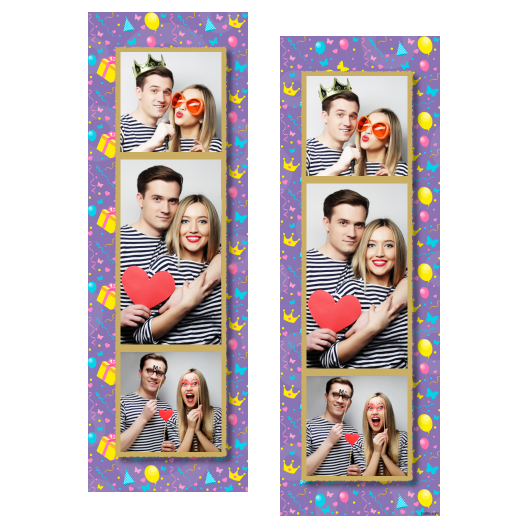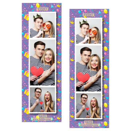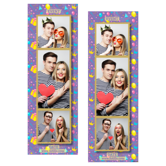 Fotobudka na przyjęciu z fioletowym tłem + prezenty i balony – Paski 15x5cm model 108