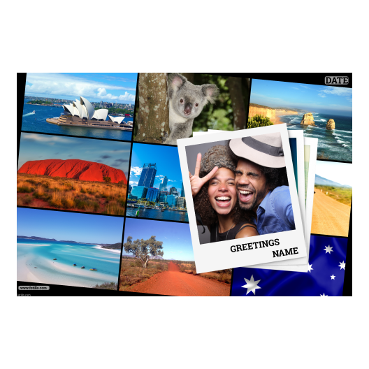 Czy znasz wszystkie miejsca w Australii pokazane na zdjęciach w tle? Nasz projekt pocztówki świetnie się sprawdzi w Australii do tworzenia spersonalizowanych pocztówek!