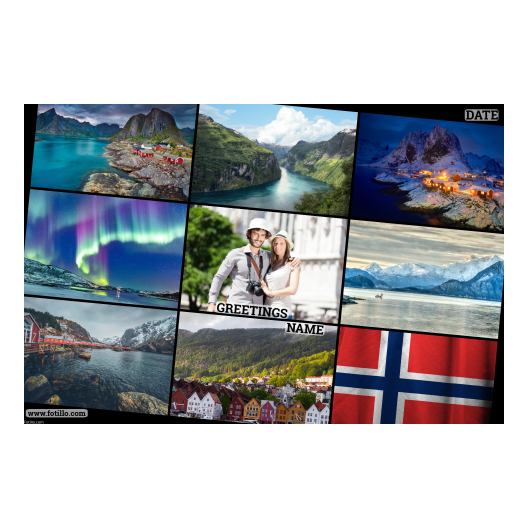 Czy znasz wszystkie miejsca w Norwegii pokazane na zdjęciach w tle? Nasz projekt pocztówki świetnie się sprawdzi w Norwegii do tworzenia spersonalizowanych pocztówek!