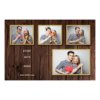 Przedstawia 4 zdjęcia, które komponują się na brązowym tle.