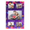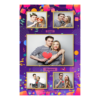 Przedstawia 5 zdjęcia, które komponują się na fioletowym tle.