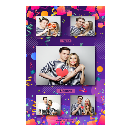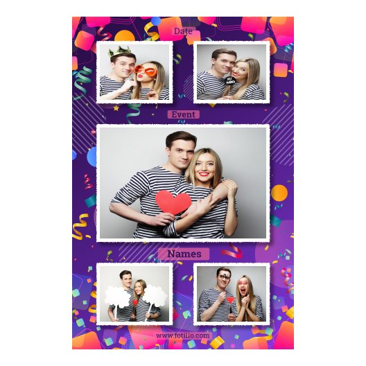 Przyjęcie urodzinowe to doskonała okazja na spotkanie z najbliższymi. Takie spotkanie koniecznie trzaba uwiecznić na zdjęciach. Wynajmij fotobudkę z programem Fotillo. na swoje przyjęcie i wykorzytaj ten szablon do zdjęć.