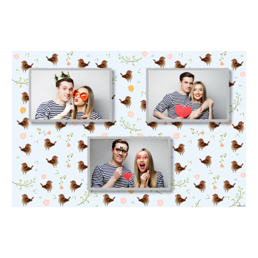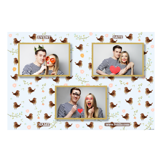 Szablon do fotobudki inspirowany Światowym Dniem Wróbla z kwiatami w tle.