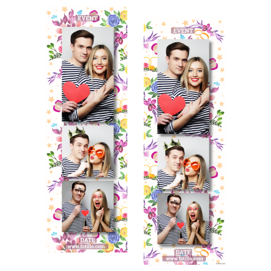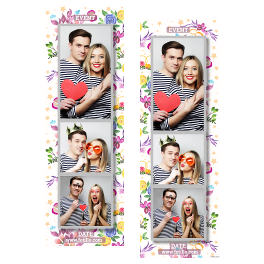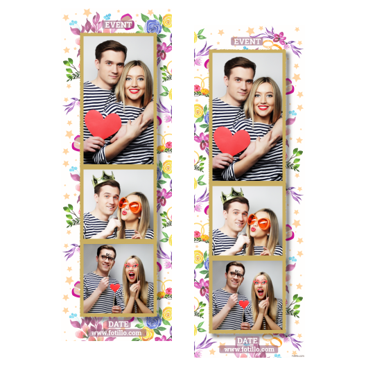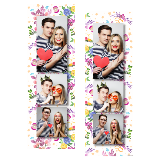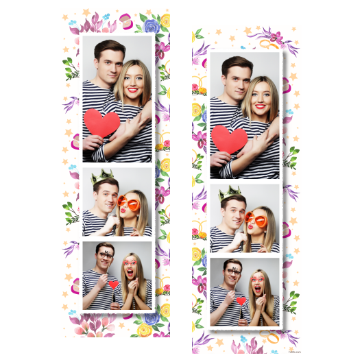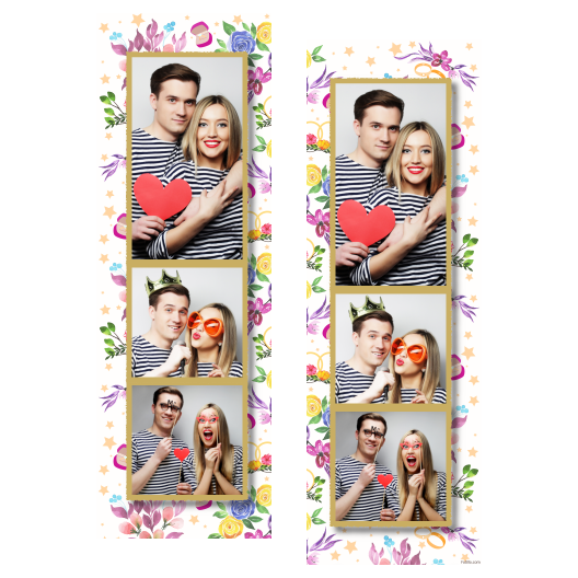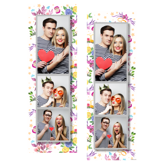 Zdjęcia z fotobudki inspirowane rocznicą ślubu z kwiatami w tle