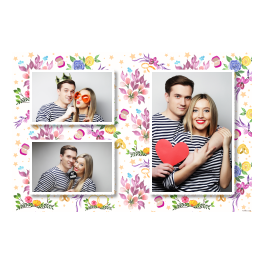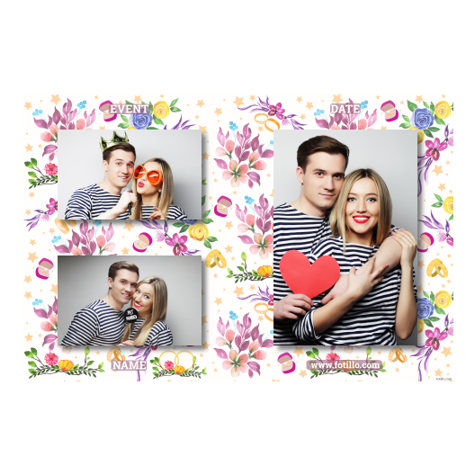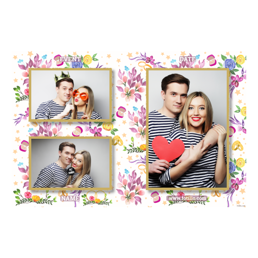 Zdjęcia z fotobudki inspirowane rocznicą ślubu z kwiatami w tle