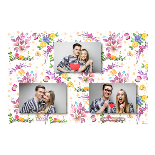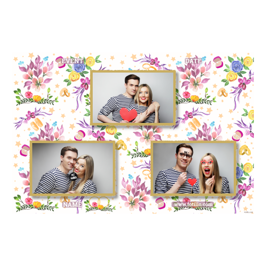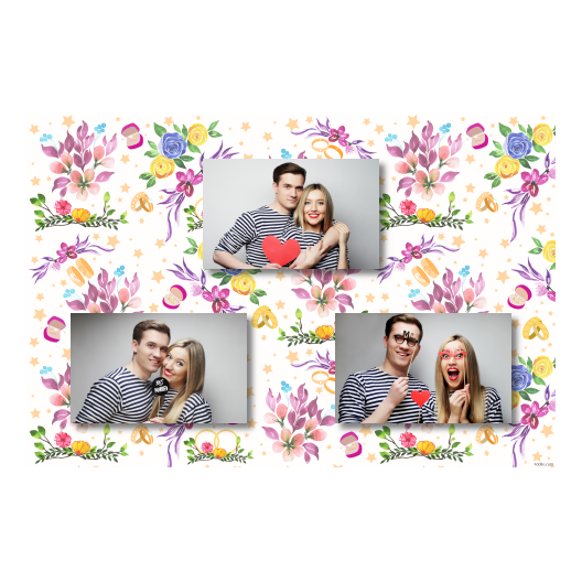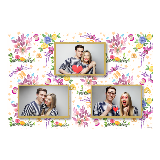 Zdjęcia z fotobudki inspirowane rocznicą ślubu z kwiatami w tle