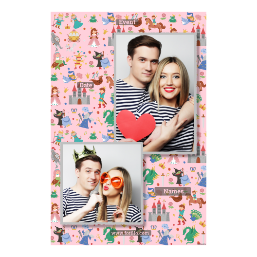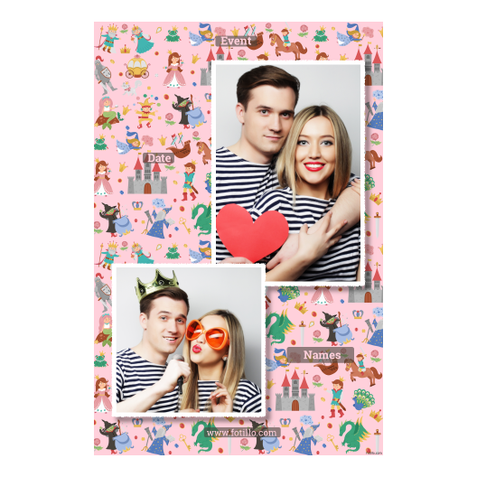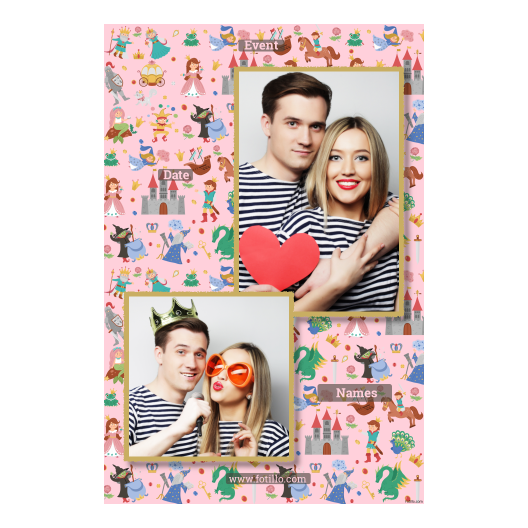 Day of Fairy Tales Characters with pink background + castles – Postcard 6×4 model 309