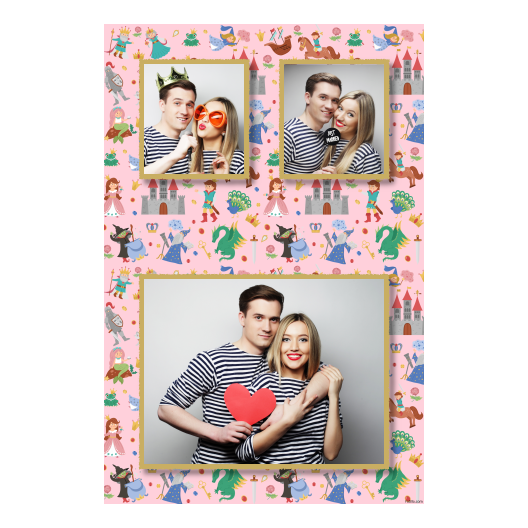 Day of Fairy Tales Characters with pink background + castles – Postcard 6×4 model 318