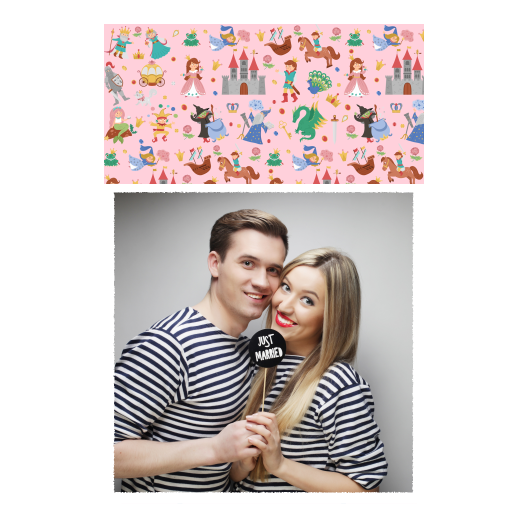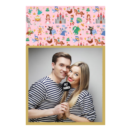 Day of Fairy Tales Characters with pink background + castles – Postcard 6×4 model 326
