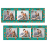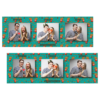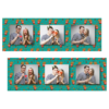 Shows 3 photos, that compose on the green background.