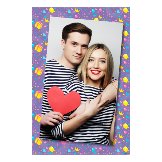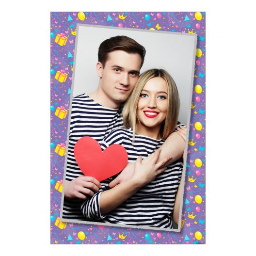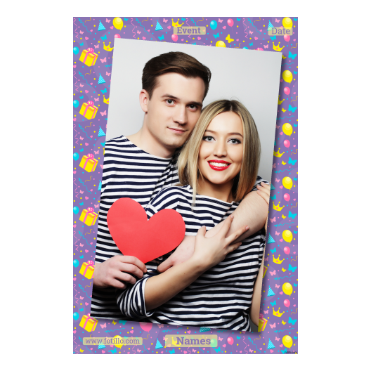 Photo Booth on Event with violet background + gifts, balloons – Postcard 6×4 model 323