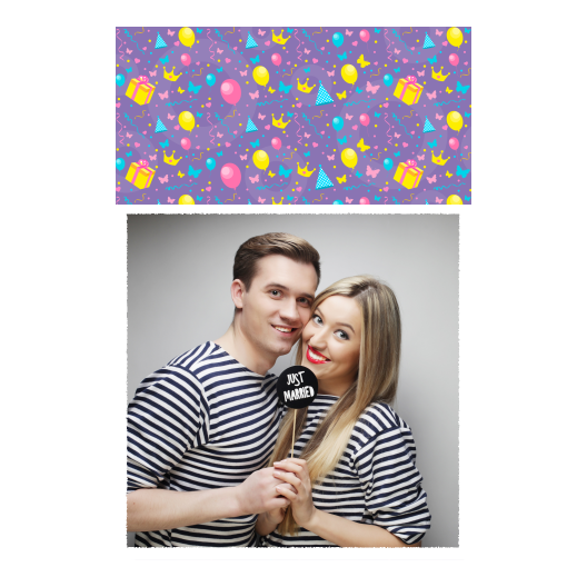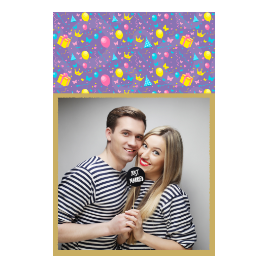 Photo Booth on Event inspired us to create the template with gifts and balloons in the background.