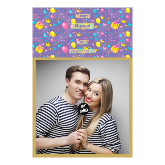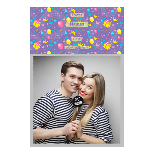 Photo Booth on Event with violet background + gifts, balloons – Postcard 6×4 model 326