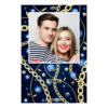 Shows 1 photo, that compose on the navy blue background.