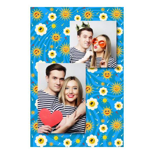 Shows 2 photos, that compose on the blue background.