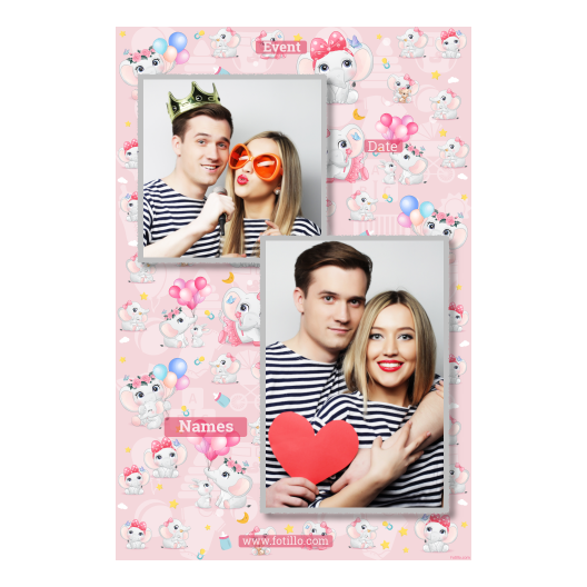 Photo booth template related to Baby Shower, with elephants elemenets.