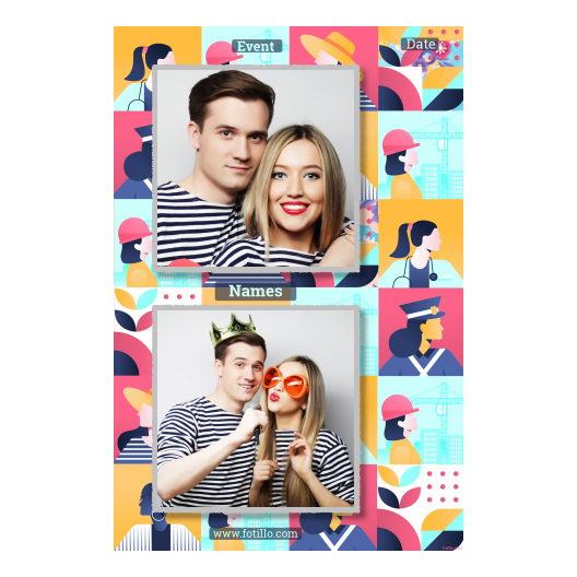 Photo booth template related to Women’s Day, with collage elemenets.