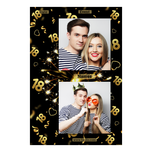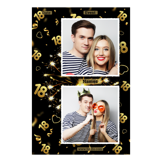 Photo booth template related to 18th Birthday Party, with 18 elemenets.