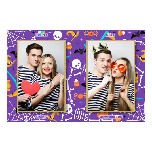 Photo booth template related to Halloween Party, with skeletons elemenets.